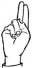 На ћирилици написано БУДИМИР МИЛИВОЈЕВИЋ састоји се из 18 слова [?]. Исписано ћириличном једноручном азбуком за глувонеме: